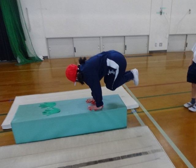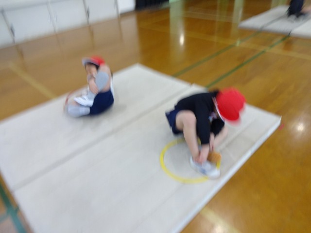 2時間目の体育館では、1年1組が体育科「マットあそび」の学習をしていました。