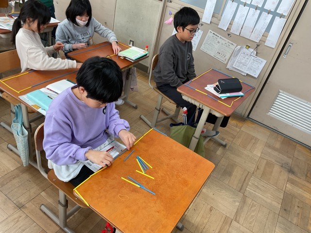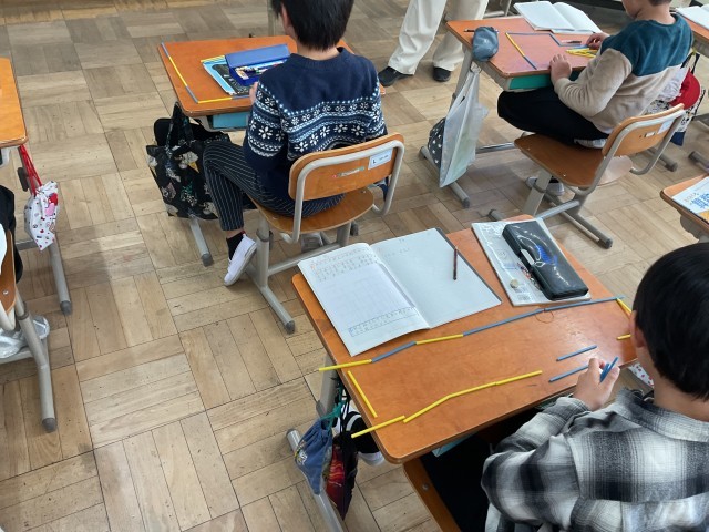 算数「変わり方」という単元の学習で、18本のストローを使って長方形を作るという活動をしました。