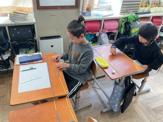 「できた!」「この形もできる!」と、作るうちに色々な長方形ができることに気がついた子どもたち。