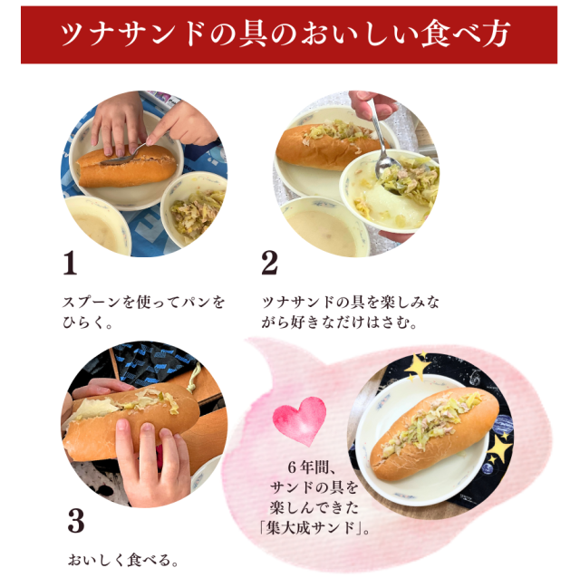 子どもたちが作るセルフサンドは、パンの開き方もどれくらい具をはさむかも、自分のお好みで。