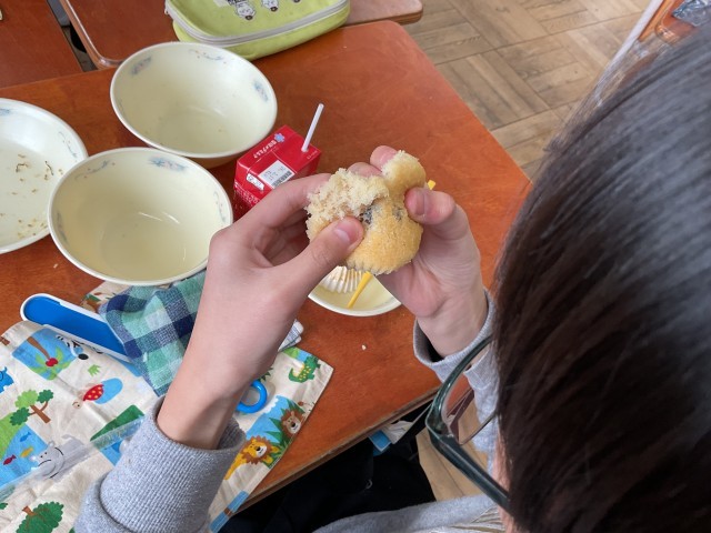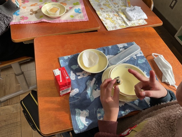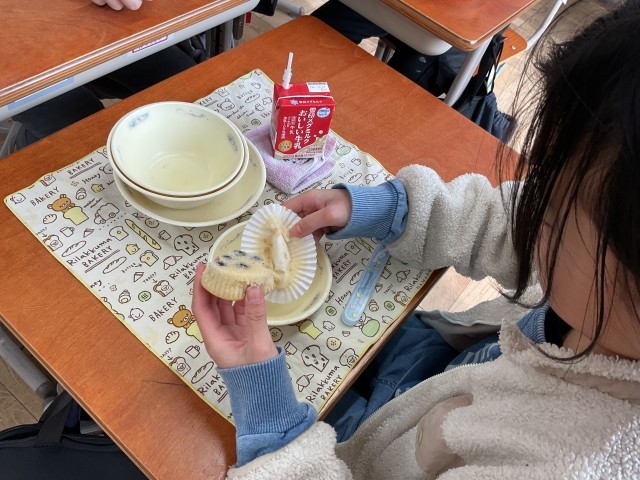 今日の給食は、新献立でした。「みやこ焼き」が甘くて、もちもちして、美味しそうに食べていました。子どもたちも大満足でした。新献立にわくわくして、楽しい給食時間でした。