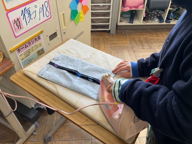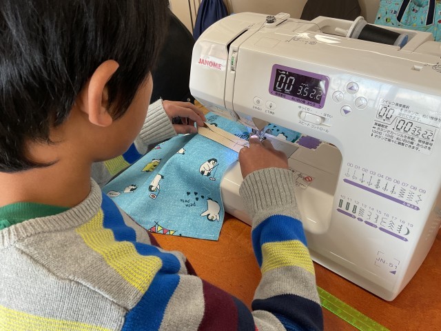 家庭科ではミシンを使ってティッシュカバーを作製中です。