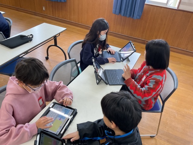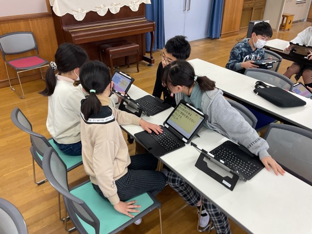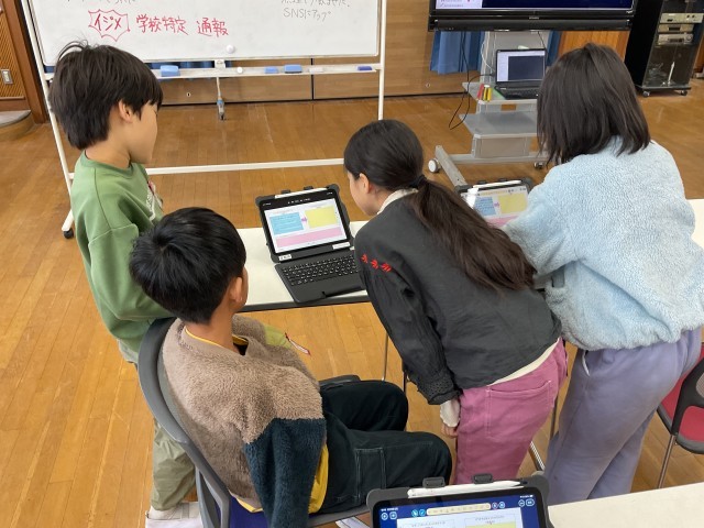 情報モラルの学習をしました。軽い気持ちでSNSに動画をあげてしまったという教材から、「何が問題だったのか」「どうすればよかったのか」を考えました。友達の意見と交流しながら、気をつけなければいけないことに気づいていました。