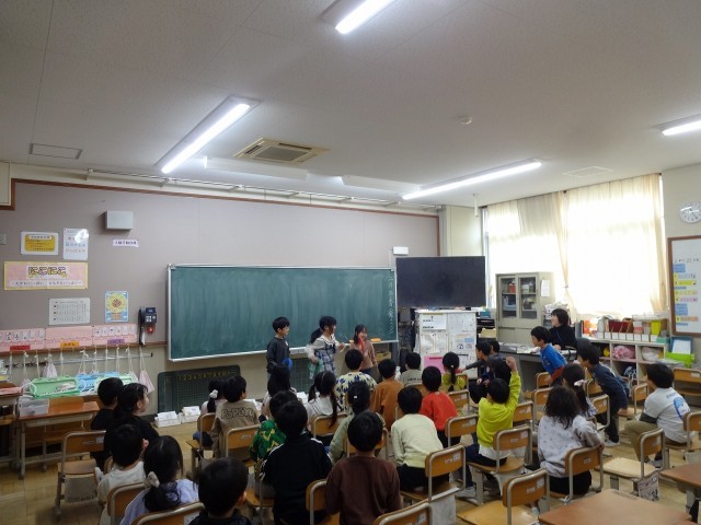 3時間目の1年1組では、国語科「いいこといっぱい、一年生」の学習をしていました。来週の学習発表参観で、この1年間で頑張ったことを発表します。そのリハーサルをしていました。