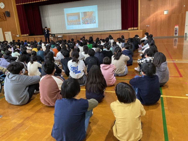 校長のお話の後に、図画工作作品の受賞の発表がありました。全校で拍手をして受賞者をお祝いをしました。