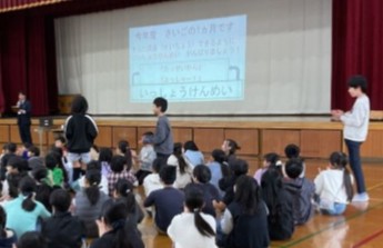 今日の1時間目は朝会でした。