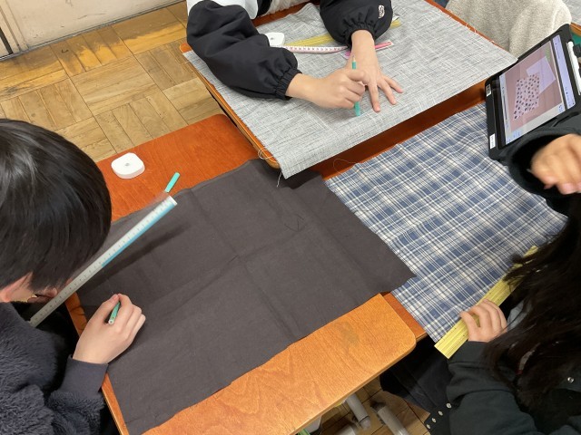 それぞれで選んだ布でランチョンマット作りに励んでいます。