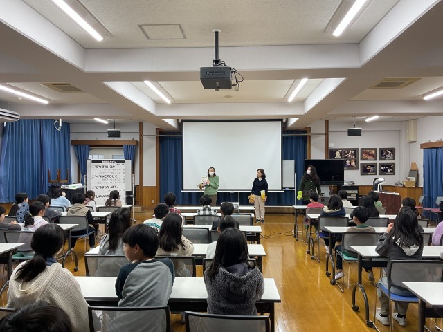 1年間、1・2・3学期とそれぞれの学期に1回ずつお話タイムをしていただきました。
