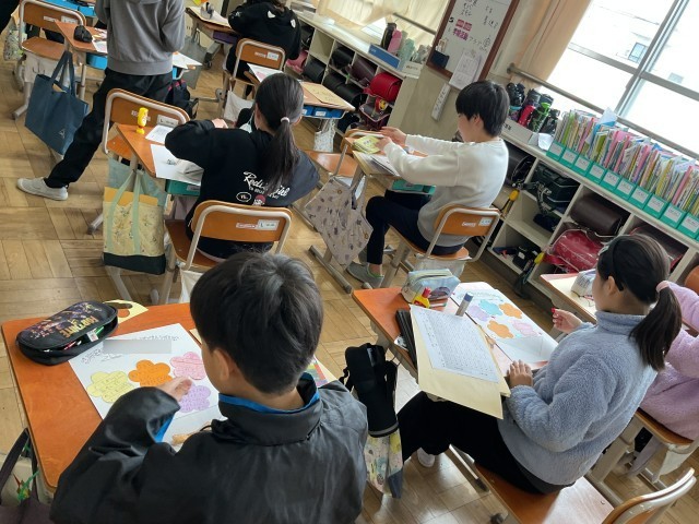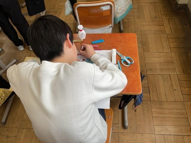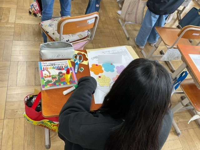 縦割りグループでお世話になった6年生にメッセージカードを作りました。