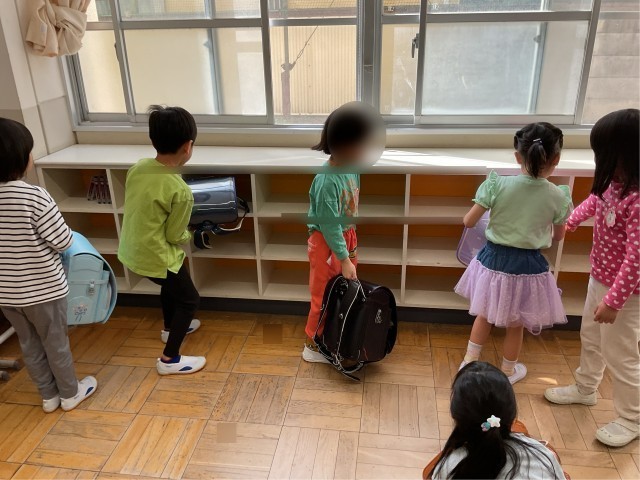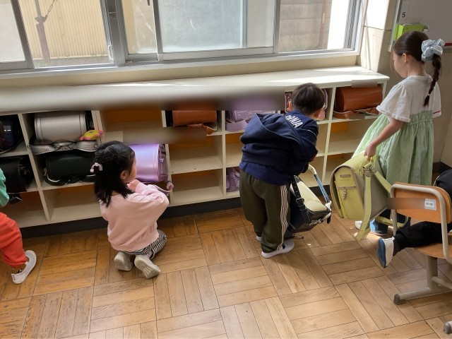 自分のロッカーを探して、ランドセルを自分のロッカーに片づけました。