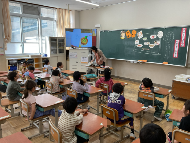 栄養教諭と一緒に給食について学習しました。