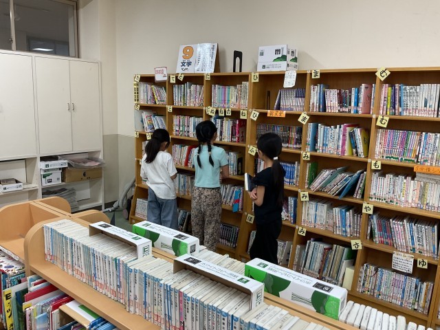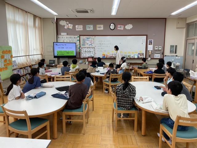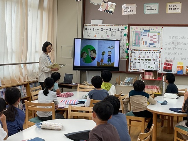 「図書館を使いこなそう」の学習をしました。本には、分類番号があることや、調べ方について知りました。同じ「馬」の本を調べたくても「馬」のどんな本を探しているかによって、番号が変わることにとても驚いていました。読み聞かせを聞いた後、本を選んで、借りました。