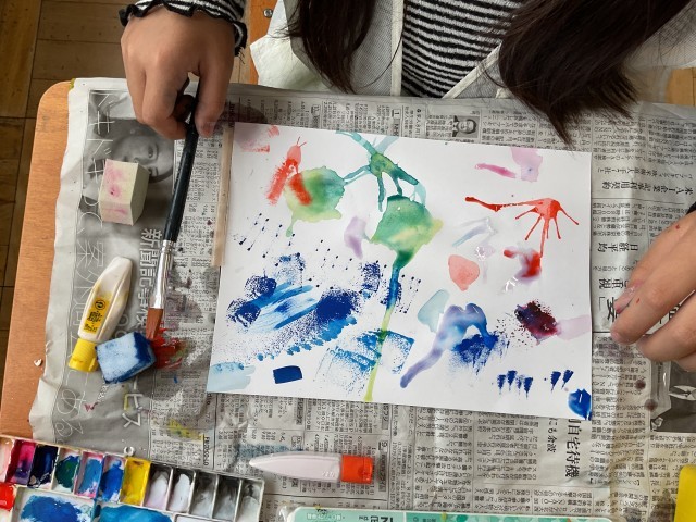 「絵の具で夢もよう」では、道具を使って表現することにチャレンジしています。