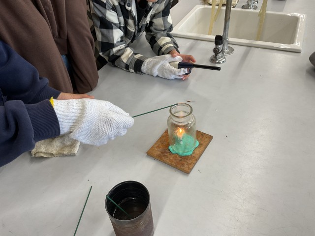 自分たちで火をつけ、安全に気をつけて実験することができました
