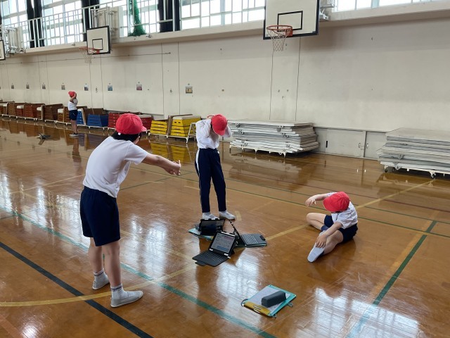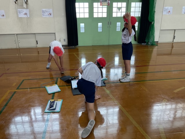 体力の大切さを知って、自分の体のパワーアップをするための体操をしています。初めは、体の「やわらかさ」をアップさせるために、自分で選んだ体操をしっかりと行いました。「一つレベルが上がったよ」とか、「前より柔らかくなった」という声も聞こえました。ストレッチは、とても気持ちがいいので、これからも続けてさらに柔らかくなれたらいいなと思います。