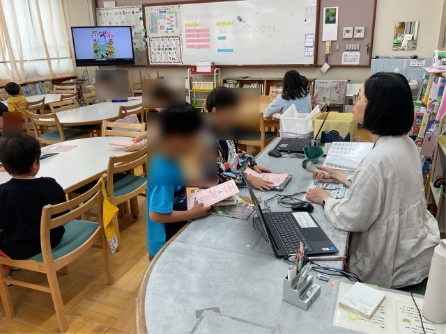 「1年1組の○○です。本を借ります。」としっかりと伝えて借りることができました。