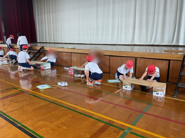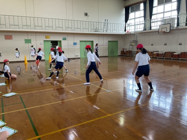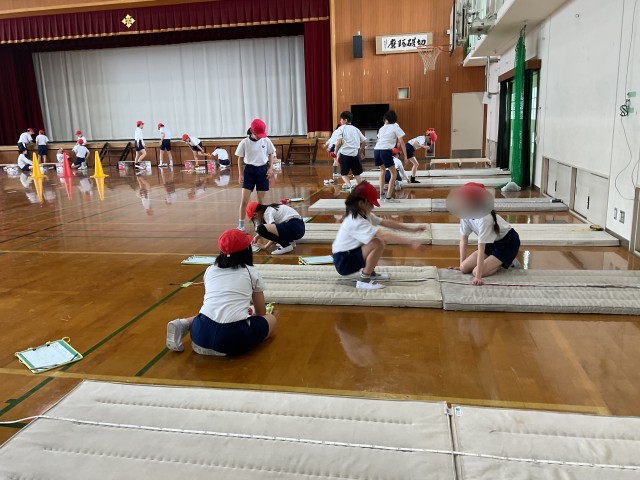 2時間目にはソフトボール投げ、3時間目には立ち幅跳び、長座体前屈、反復横跳びなどに取り組みました。