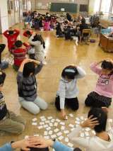 教室に,百人一首の歌を詠む声が響きます。子どもたちの集中が高まる一瞬です。はい...