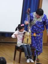 演奏の後,何人かの子どもたちに,実際に馬頭琴を弾かせてくれました。盛りだくさんの...