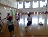 3時間目の体育館では、2年1組が体育科「リズムあそび」の学習をしていました。曲の...