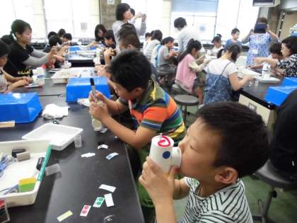 また3年生は施設内のコーナーを回り,体験的に科学の面白さを見つけることができました。