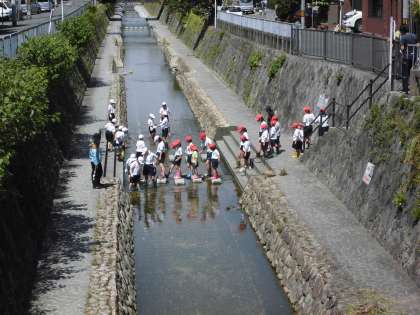 1年生とペアになって,紙屋川の清掃活動を行いました。