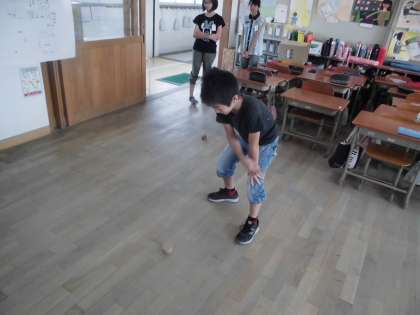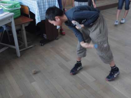 韓国・朝鮮の文化体験をしています。「ペンイ」というこま回しを体験しました。初めはうまくできず苦戦していましたが,回せるようにようになると「すごいすごい」「もっとやりたい」と楽しみながら学習することができました。