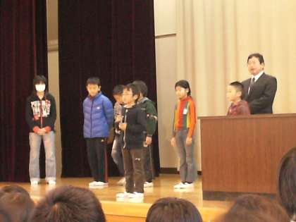 22日(水)の朝,朝会がありました。明日から冬休みということで,校長先生からは健康で安全な冬休みを送るために気をつけることの話がありました。また,学校で取り組んでいる読書の活動を冬休みにも継続できるよう,各学年の代表が,お気に入りの本の紹介をしてくれました。題名だけでなくあらすじも伝えてくれたり,おすすめのポイントも教えてくれたりしていました。