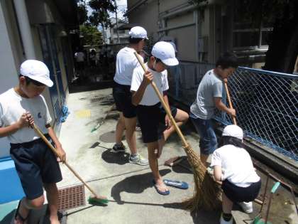晴れている時間を見つけて,5年生はプール清掃しました。