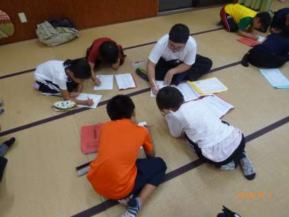 心配された天気も何とか回復し,ほぼ予定通りの活動をすることができました。子どもたちはどの活動もしっかり取り組んでいました。反省会では5分前行動ができていないという意見が多く出たので,明日は5分前行動をがんばります。