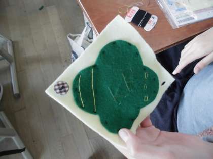玉結びや玉止め,波縫い,ボタンづけなどをして作品を作りました。