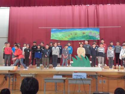 4年生は,国語科で学習した新美南吉作「ごんぎつね」の群読劇を発表しました。