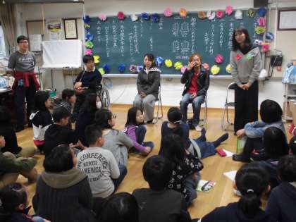 最後には4人の方から思いを話してもらい,「多文化共生」という言葉や「どんな人ととも仲良くしてほしい」「相手の立場に立って人と接してほしい」などといった言葉を言っていただきました。今回の交流が子どもたちにとって実りある交流になったのではないかと思います。