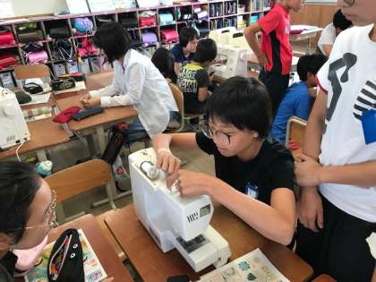 はじめは,ミシンが怖いと言っていた児童も,一人でしっかっりと操作することができました。