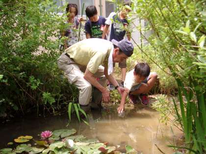 5日(水)の総合学習の時間に,ヘイケボタルの幼虫をいのちの庭の池に放流しました。小さなホタルの幼虫を初めて見た子も多く,とてもうれしそうに観察していました。池に代表の子が放流する際にも,みんな慎重に大切に池に放っていました。その後,これからどんなことをしていくのか話し合い,日々の観察や涼しくなるような覆いをするなどの意見がでました。キラキラとすてきなホタルが飛ぶよう,みんなでお世話を頑張ります。