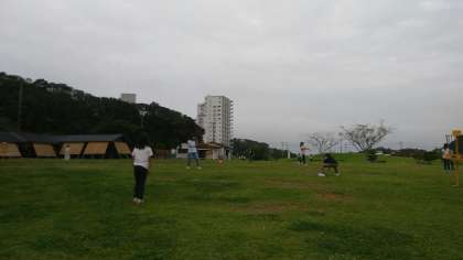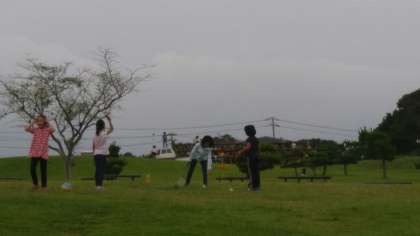 少し遅めの昼ご飯を食べました。このあとは雨雲が近づいてきているので,芝生広場での活動を先にすることにしました。