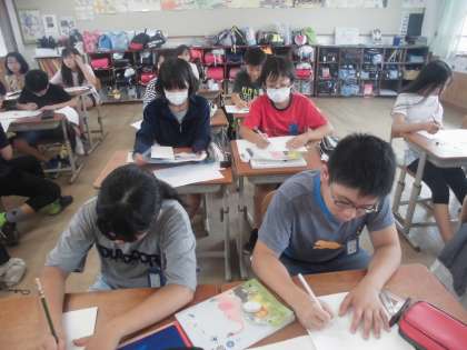 今日で清書をしました。次の国語科の学習でどんな作品ができたかを交流します。