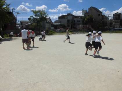 学年競技の3人4脚をしました。息を合わせて,早く走るまでの道のりは長くなりそうです。しばらくは「痛い痛い痛い」「もっと,息を合わせよ」という声が聞こえてきそうです。