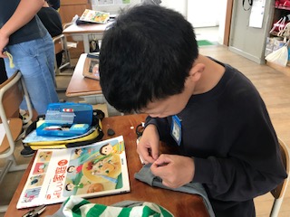 最初は戸惑っていましたが,作業を始めると黙々と進めていました。
