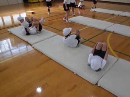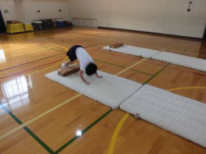 体育のマット遊びでは,前転や後転,飛び込み前転や側転に挑戦しました。