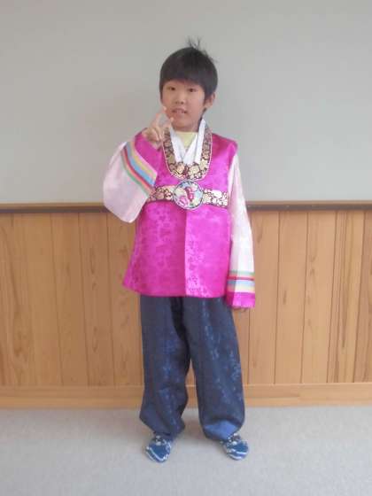 今年は,韓国・朝鮮の伝統衣装「パジチョゴリ」と「チマチョゴリ」について教わり,実際に衣装を一人一人着させていただきました!