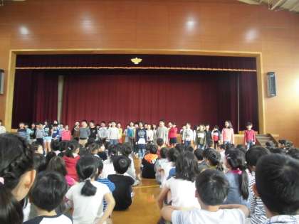 今日のあかしやタイムは2年生の発表でした。「のはらうた」を野原の生き物たちの気持ちになって群読しました。