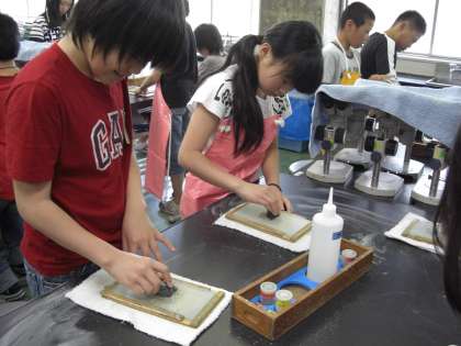 6年生は,5月17日(火)に京都市青少年科学センターへ理科の勉強をしに行きました。学校の授業よりも専門的な実験を経験してきました。地学コースでは,塩酸を使って二酸化炭素を発生させたり,石灰岩の標本を作ったりすることを通して,どうして地球の大気は他の惑星よりも二酸化炭素が少ないのかについて考えました。