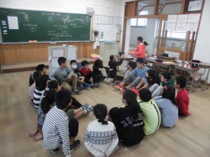 雨の日のみんなあそびは教室で「ハンカチ落とし」をしました。