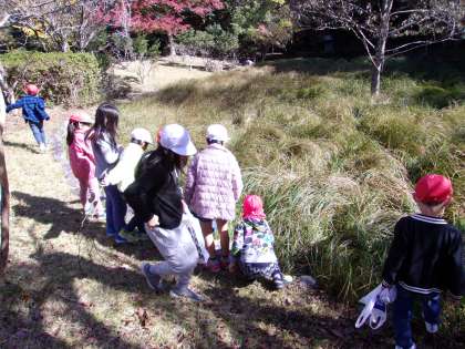 どんぐりやきれいな色の葉っぱを見つけ,大喜びでした。