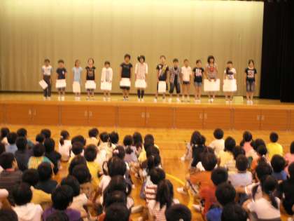 4年生は,先月,2泊3日で行った「みさきの家」で学んだことを一人ひとりが発表しました。「時間を守る大切さ」や「友だちと協力することの意味」などをこれからの学校生活に生かしていくことを話してくれました。