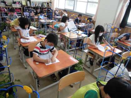 国語の「おおきくなった」では,観察カードの書き方を学習しています。