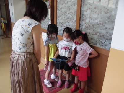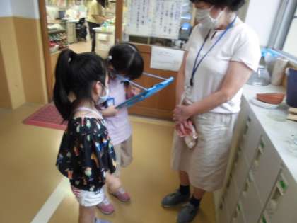 名前や,好きな給食などを聞き,にこにこと教室に戻ってきています。
