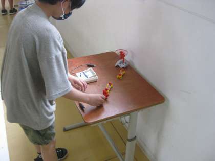 モーターが回る速さが変わるかどうかを実験しました。