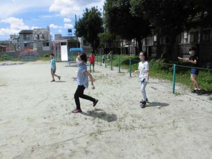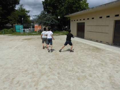 梅雨空が続く中,久しぶりに晴れ間が見えて元気に運動場で遊んでいました。